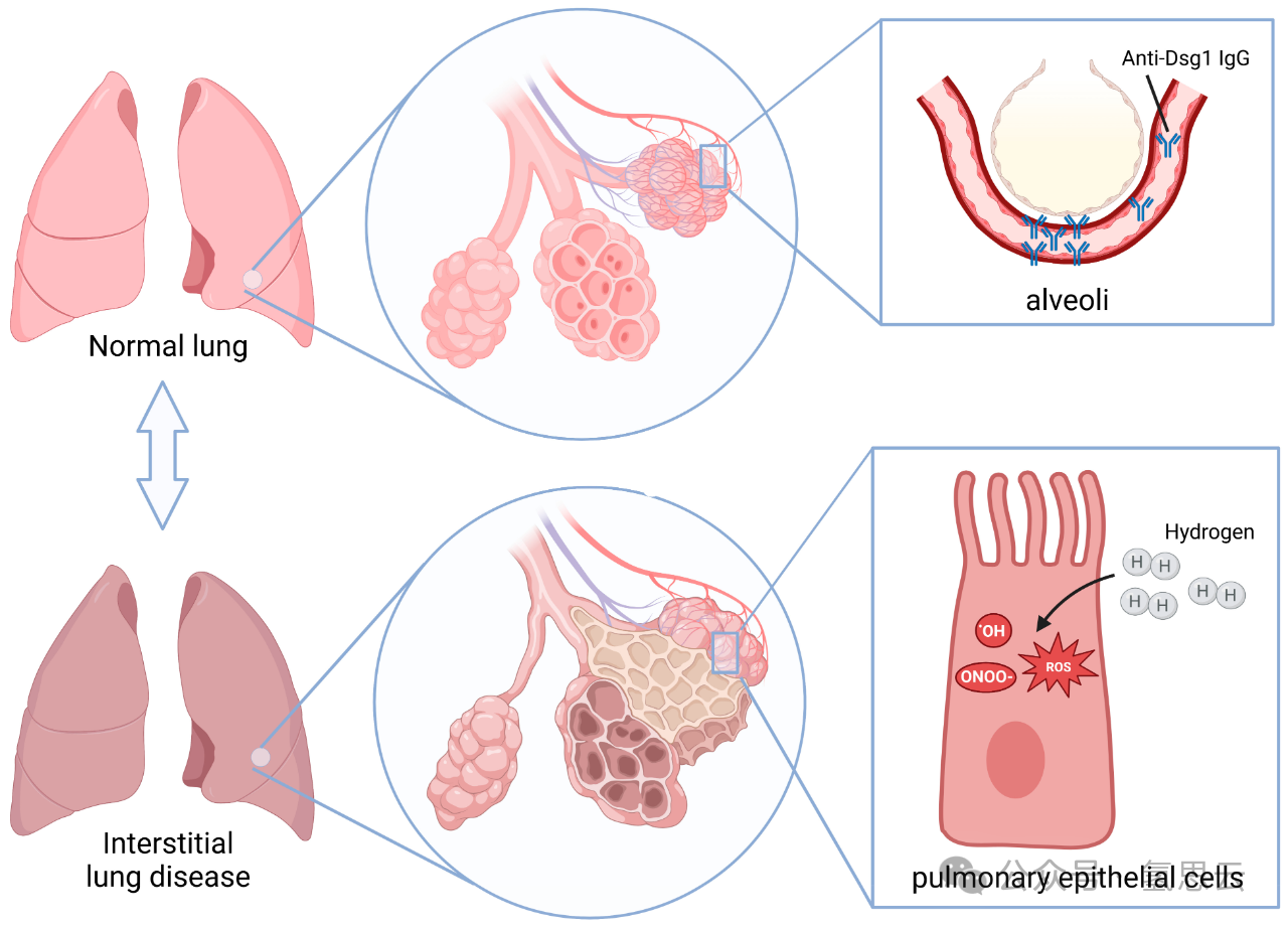 Tang, C.; Wang, L.; Chen, Z.; Shi, X.; Chen, Y.; Yang, J.; Gao, H.; Guan, C.; He, S.; Zhang, L.; et al. Molecular Hydrogen Ameliorates Anti-Desmoglein 1 Antibody-Induced Pemphigus-Associated Interstitial Lung Disease by Inhibiting Oxidative Stress. Int. J. Mol. Sci. 2025, 26, 4203.