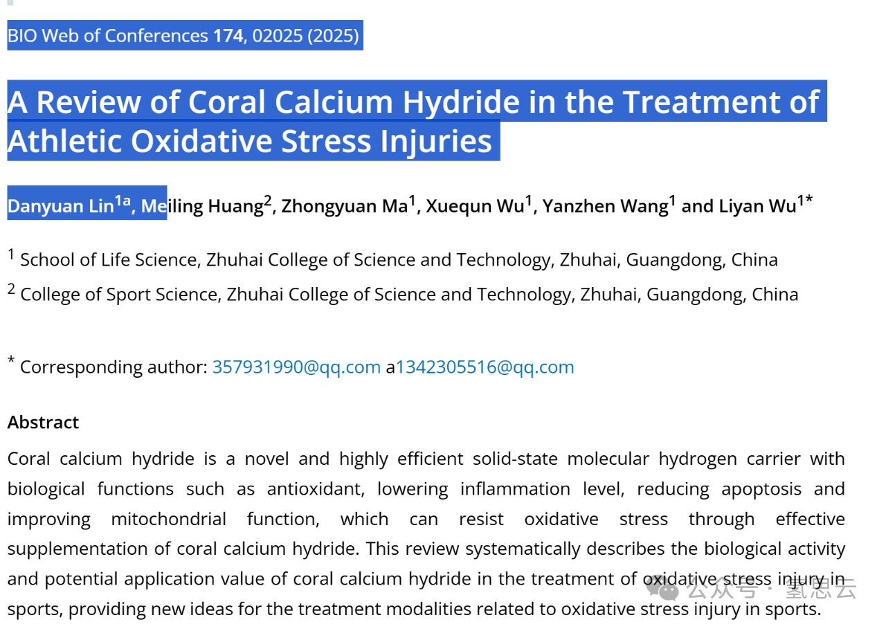 氢化珊瑚钙作为一种新型储氢材料,不仅具备优异的储氢性能,还具有抗氧化、抗炎、抗凋亡及改善线粒体功能等多种生物学活性。它通过清除自由基、增强抗氧化酶活性等多种机制发挥抗氧化作用,有效减轻运动中过量活性氧产生的损伤;同时降低炎症水平,抑制炎症因子释放,减轻运动诱导的炎症反应并促进组织修复;还具有抗凋亡作用,保护细胞免受氧化应激诱导的凋亡,维持细胞数量和功能;此外可改善线粒体功能,提高能量代谢效率,延缓运动疲劳的发生。这些特性使其在缓解运动诱导的氧化应激损伤中展现出巨大潜力。