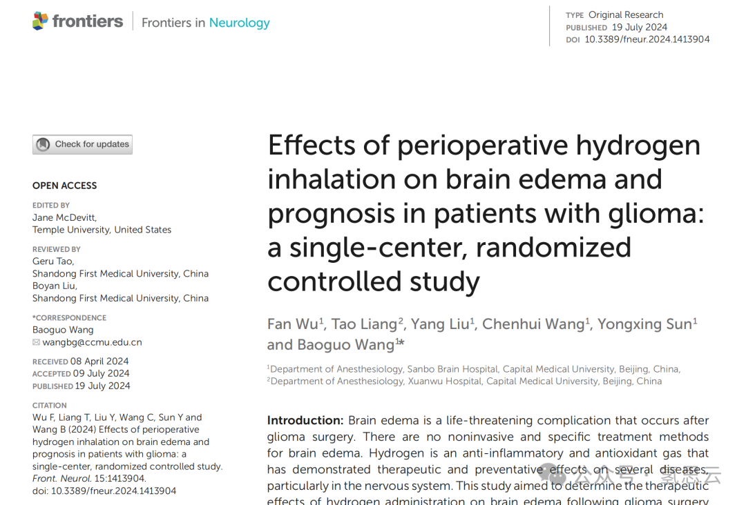 氢气用于胶质瘤患者脑水肿的随机对照试验【北京】