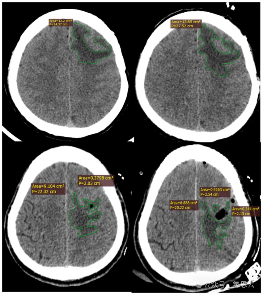 尽管MRI是诊断脑水肿的常用工具,但其在脑部手术后不久的应用可能伴随挑战。Fan等人发现,在手术后早期使用CT测量脑水肿体积是可靠的(14)。学者们证明CT可以检测和量化脑水肿,并报告其与MRI有显著相关性(15)。因此,CT扫描方便、快速、准确且可靠,突显了其广泛应用。