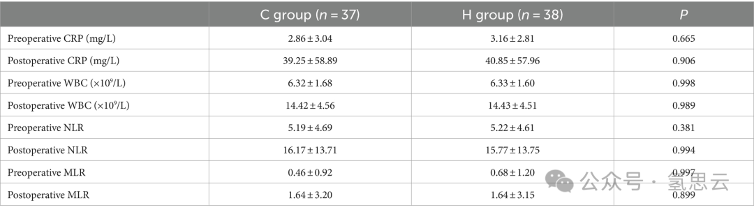 H组NRS评分在D4时低于C组,差异差异有统计学意义(p < 0.05;表7)。