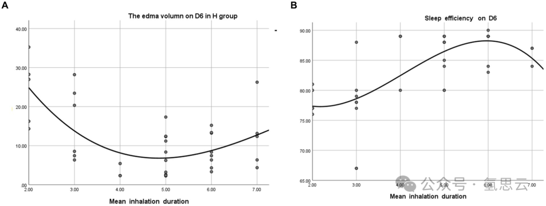 分类变量以患者数量和百分比表示。连续变量以均值和标准差(SD)表示。数值变量使用非配对t检验进行分析。分类变量使用χ2检验进行分析。P<0.05作为统计显著性的阈值。为了评估平均吸入持续时间与脑水肿体积和睡眠质量之间的关联,采用了曲线估计方法。统计分析使用SPSS 26.0和GraphPad Prism 5.0软件进行。