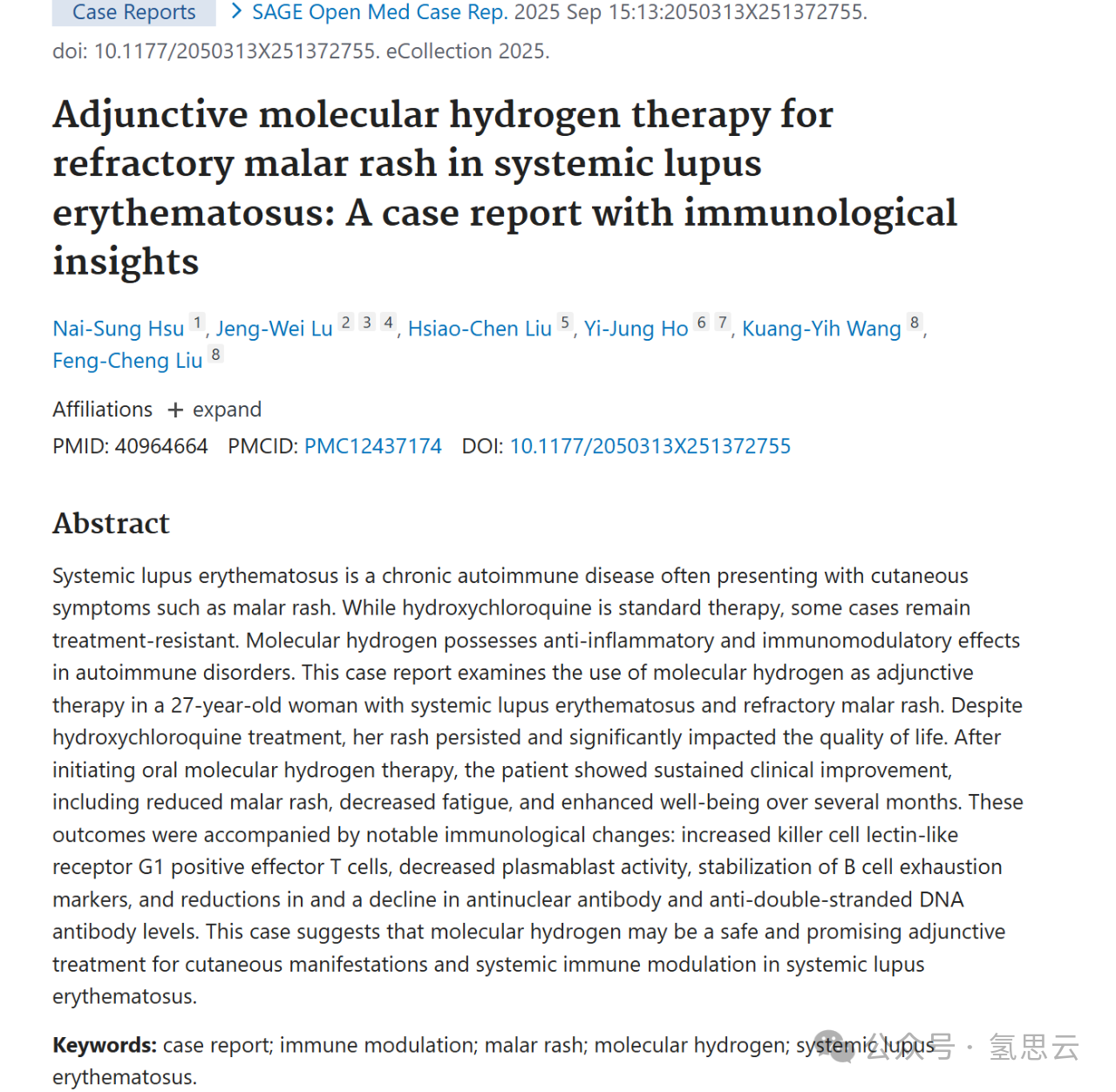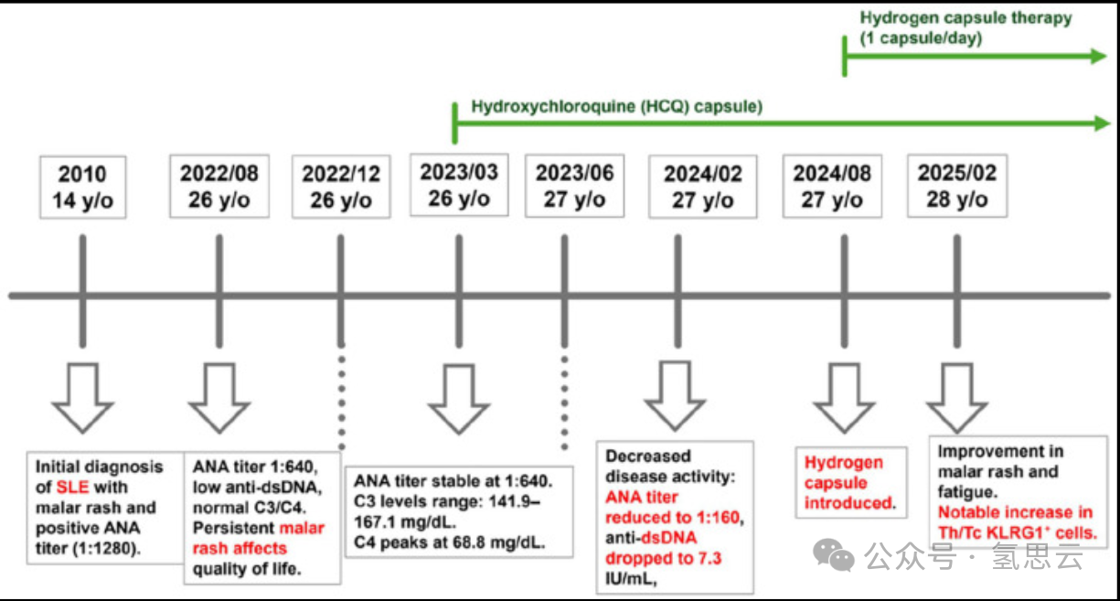本病例提示,分子氢可能是一种安全且具有潜力的辅助治疗方式,可用于改善系统性红斑狼疮患者的皮肤表现,并调节其全身免疫状态。