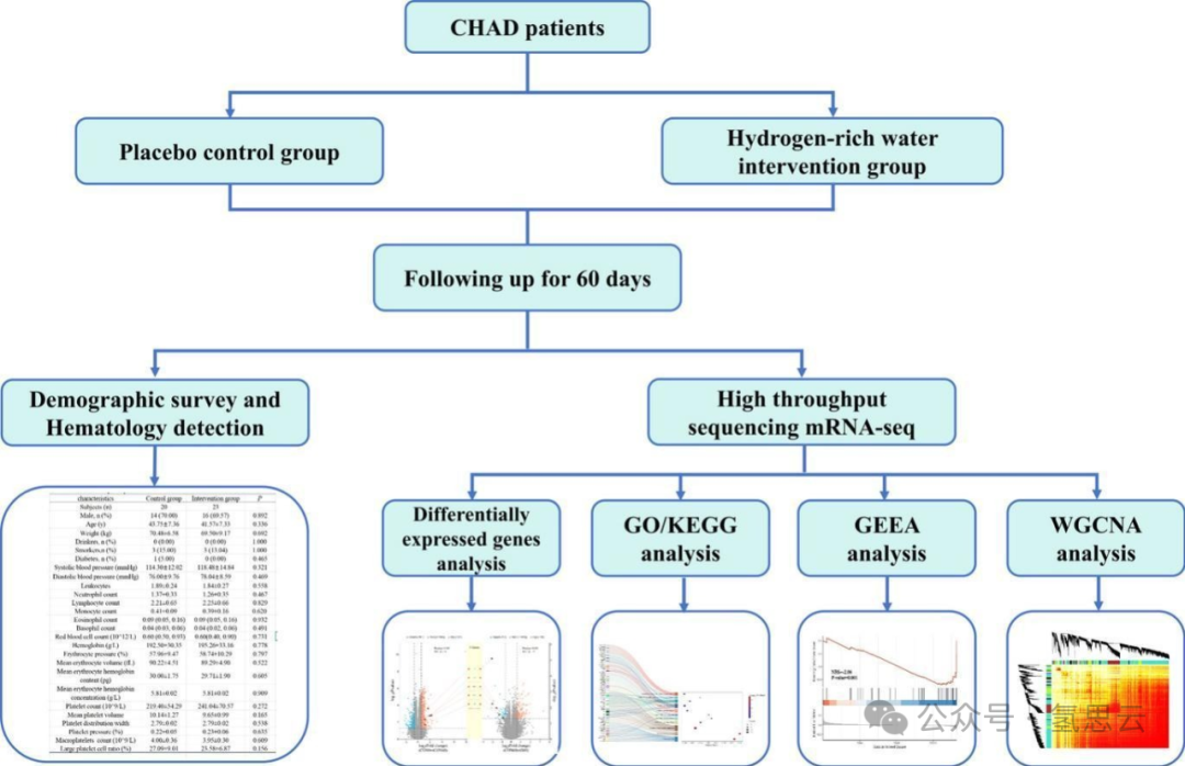 本研究开展了一项包含43名慢性高原病患者的随机双盲安慰剂对照试验,旨在评估60天摄入富氢水对患者炎症免疫细胞、氧化应激相关因子及转录组谱的影响。通过整合加权基因共表达网络分析(WGCNA)、蛋白质-蛋白质相互作用(PPI)网络分析及功能富集分析,研究识别出6个与富氢水诱导的慢性高原病患者炎症及氧化应激标志物降低相关的核心基因。本研究不仅加深了对慢性高原病进展确切机制的理解,也为慢性高原病潜在辅助治疗方案提供了新见解。